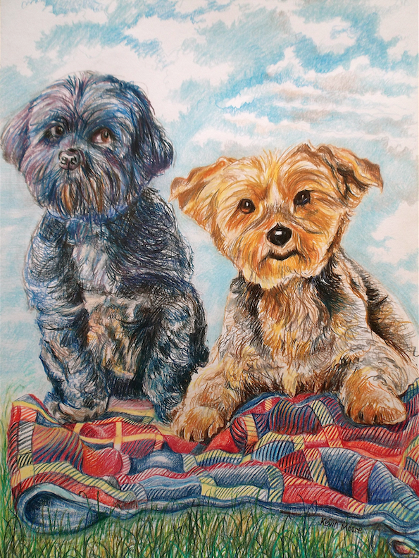 A two dog portrait would cost more as the time taken would be longer. This portrait highlights the importance of capturing the pets at their best as one dog had died and the owner wanted the memory captured, estimate here would be £70