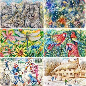 I have been working hard to illustrate a number of new cards and postcards. I have captured some of the beauty in nature reflected along the river and in the Thetford Forest. If you are free come along to The Art Studio and you can view the artwork but featured here are some of the bird pieces. Lower down are an example of 50 cards produced and available as 8″x 6″ large postcards or 7″ x 5″ greetings cards. To order select your cards and email me with the quantities for each and I will put the order together and send to you.
